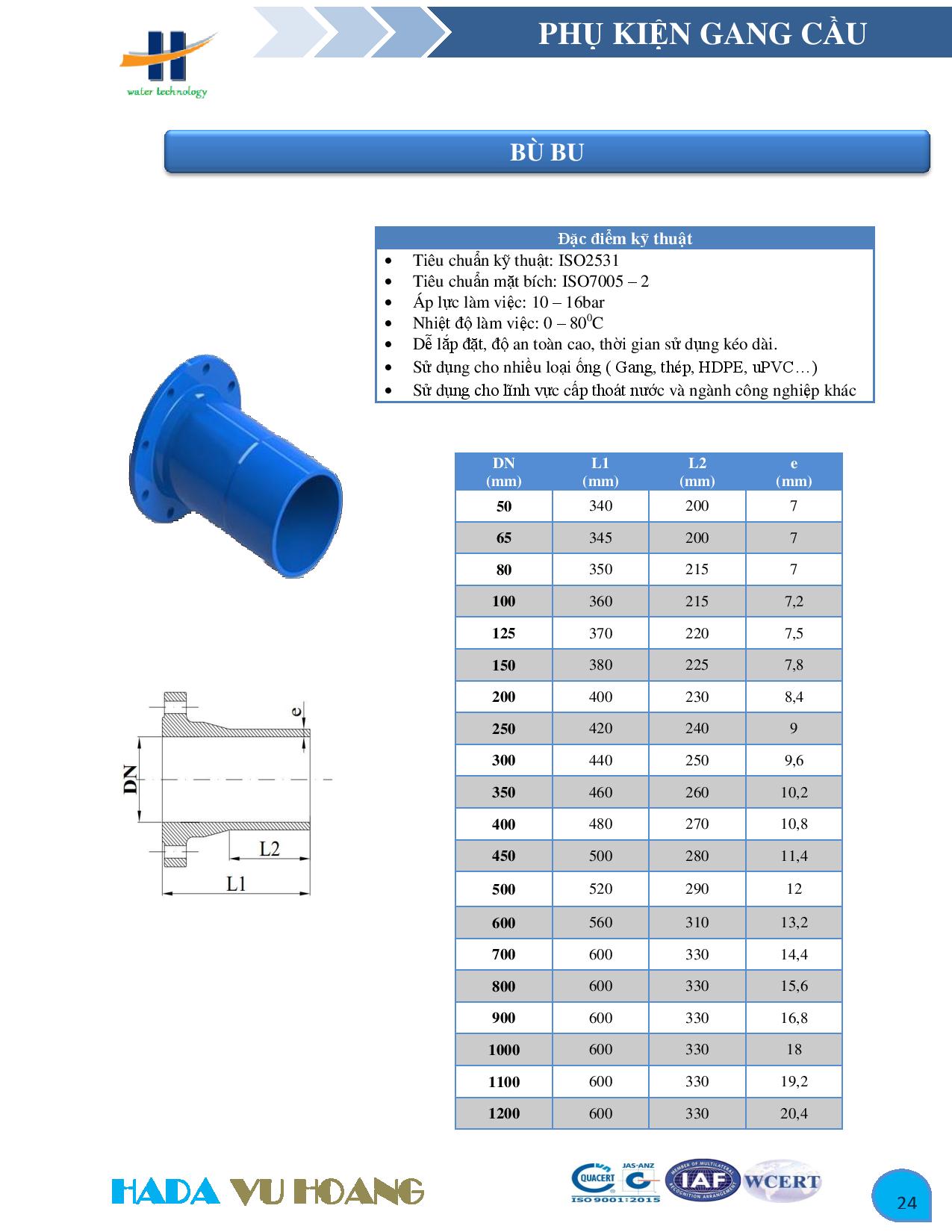 Bù BU HADA được sản xuất đạt tiêu chuẩn ISO2531