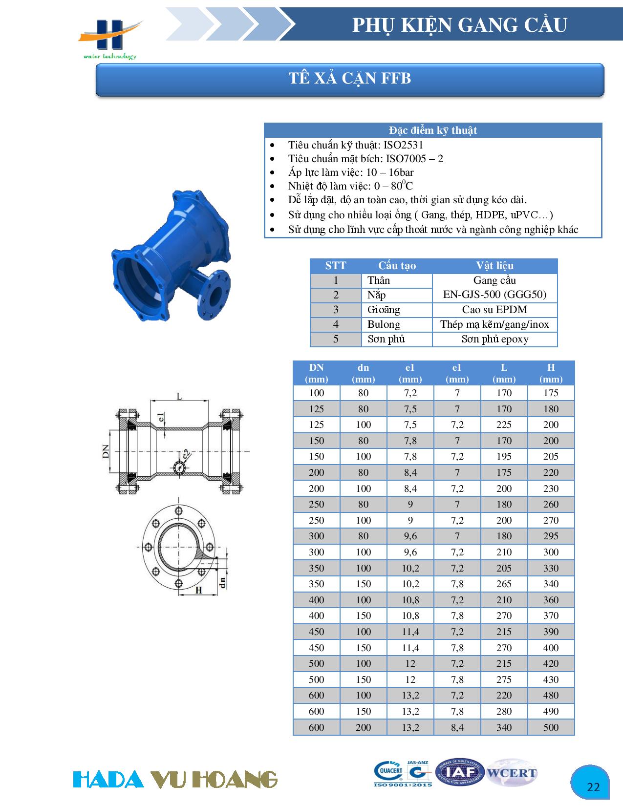 Phụ kiện gang HADA là một trong những sản phẩm của phụ kiện đường ống nước có chất lượng sản phẩm đạt tiêu chuẩn ISO 2531 do Công ty TNHH Công Nghệ và Thương Mại Vũ Hoàng độc quyền sản xuất.